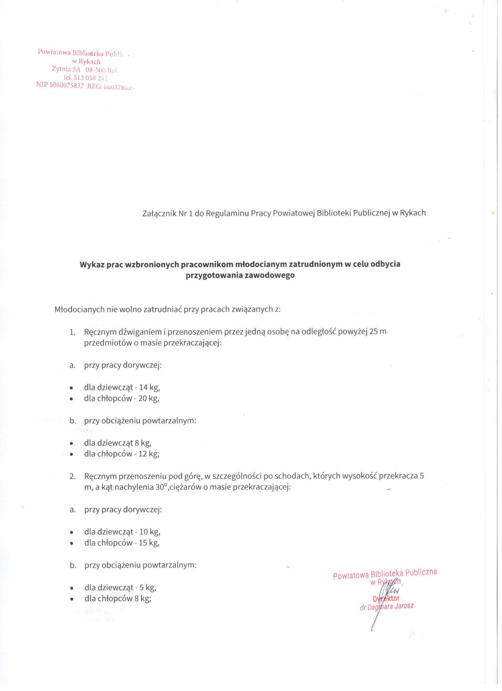 Załącznik nr 1 do Regulaminu Pracy Powiatowej Biblioteki Publicznej w Rykach